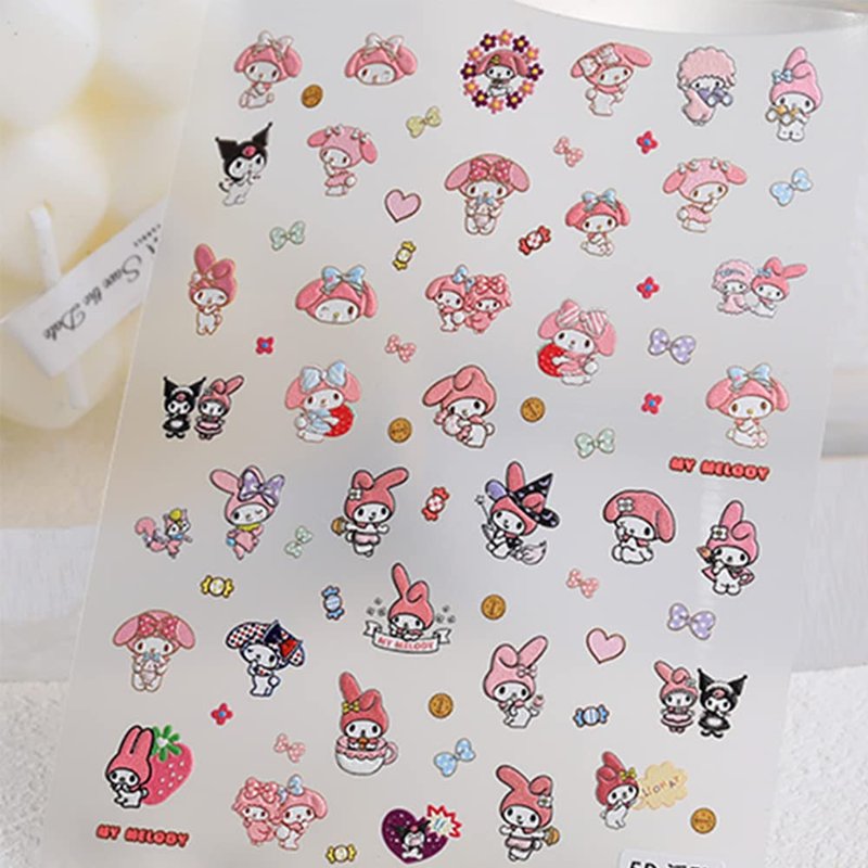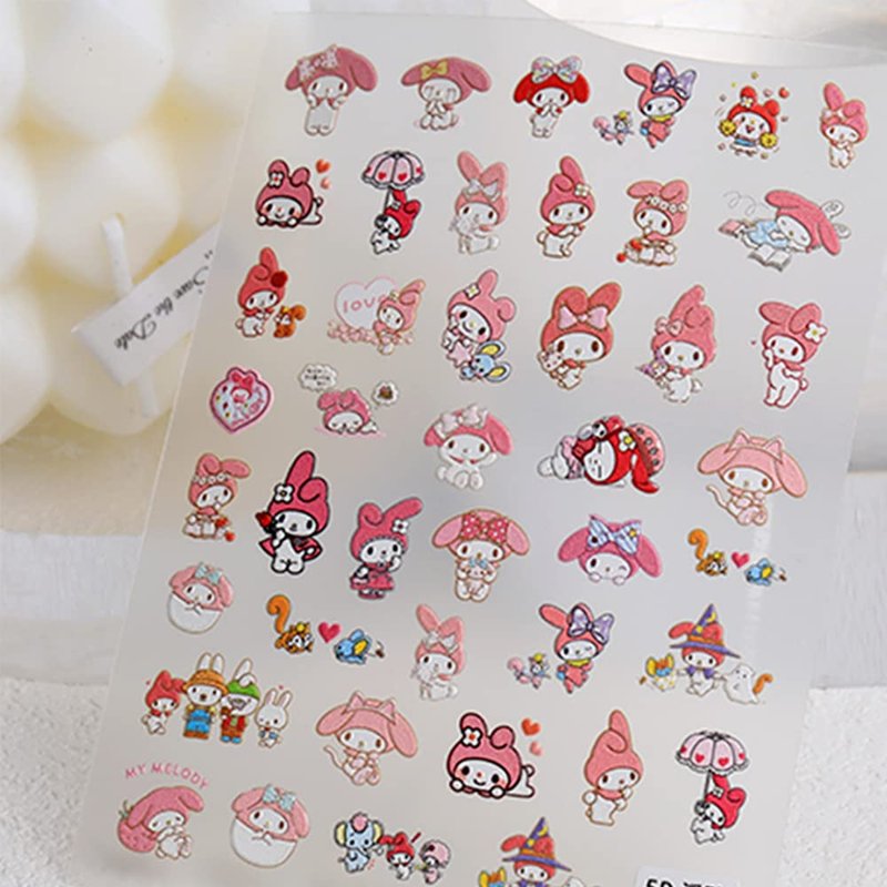 5D Nail Art Stickers Kawaii Self-Adhesive Anime Nail Stickers for Nails Art Design for Women Girls, 2 Sheets Cute Cartoon Nail Art Supplies(Melo)