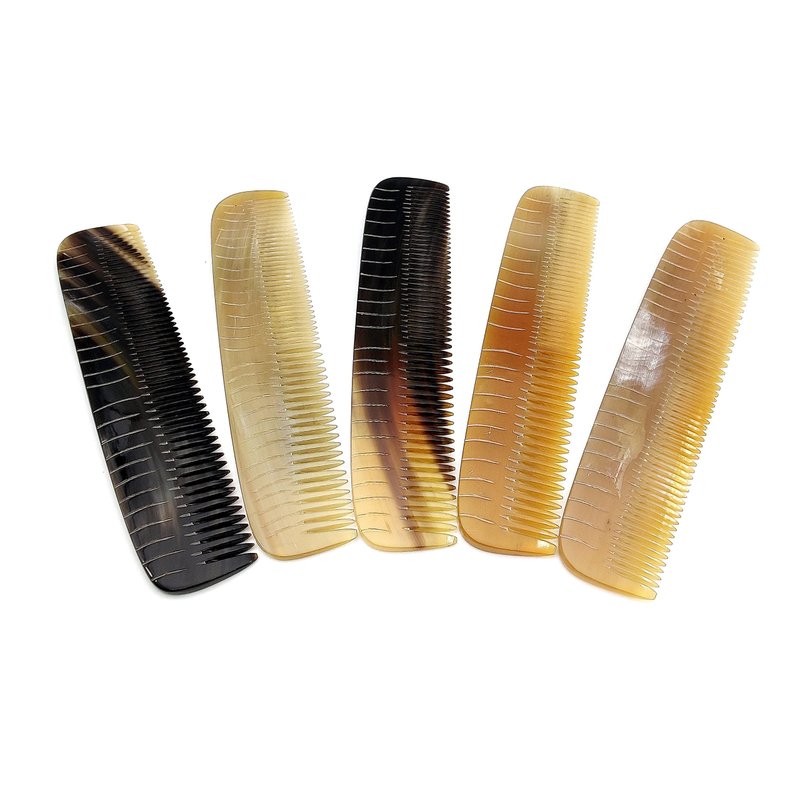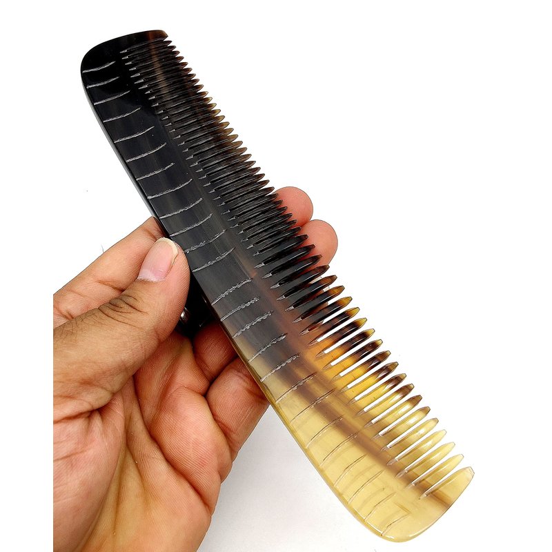 - 100% Handmade of Premium high-quality natural Ox horn. Note: Each horn is one of a kind. Each comb has an unique pattern of color and stripe variation. The comb you receive may look different than the one shown in the photos. Hair comb is handcrafted by OX horn, this horn comb is a high quality product, you can tell it when you see the close up picture of it, the material has been selected very careful, thick horn, beautiful textures and natural gloss from the finished polishing.