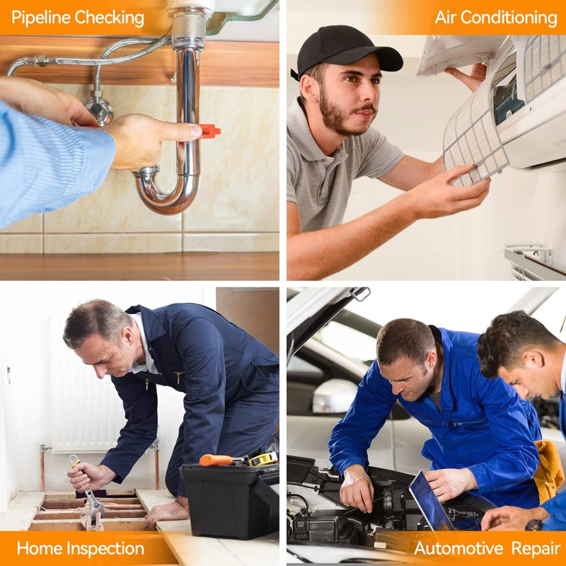 - 【16.5ft Semi-Rigid Cable With Adjustable Lights】 - Can be folded to different shapes and reach deep inside the inspection areas. Effective for automotive, HVAC, plumbing, house check, electrical maintenance, industrial, sewer, chimney inspection,etc. Solve Your Work & Life Problems!