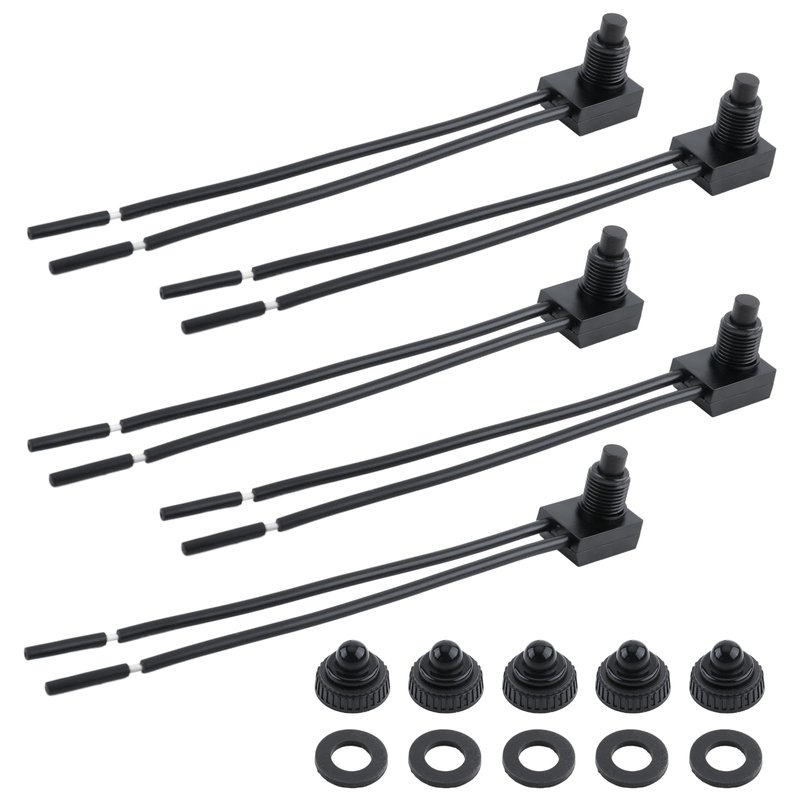 5Pcs 12V Waterproof Push-Button On-Off Switch, Carbhub 12V Waterproof Push-Button On-Off Switch with 4" Leads for Motorcycle/Auto Car