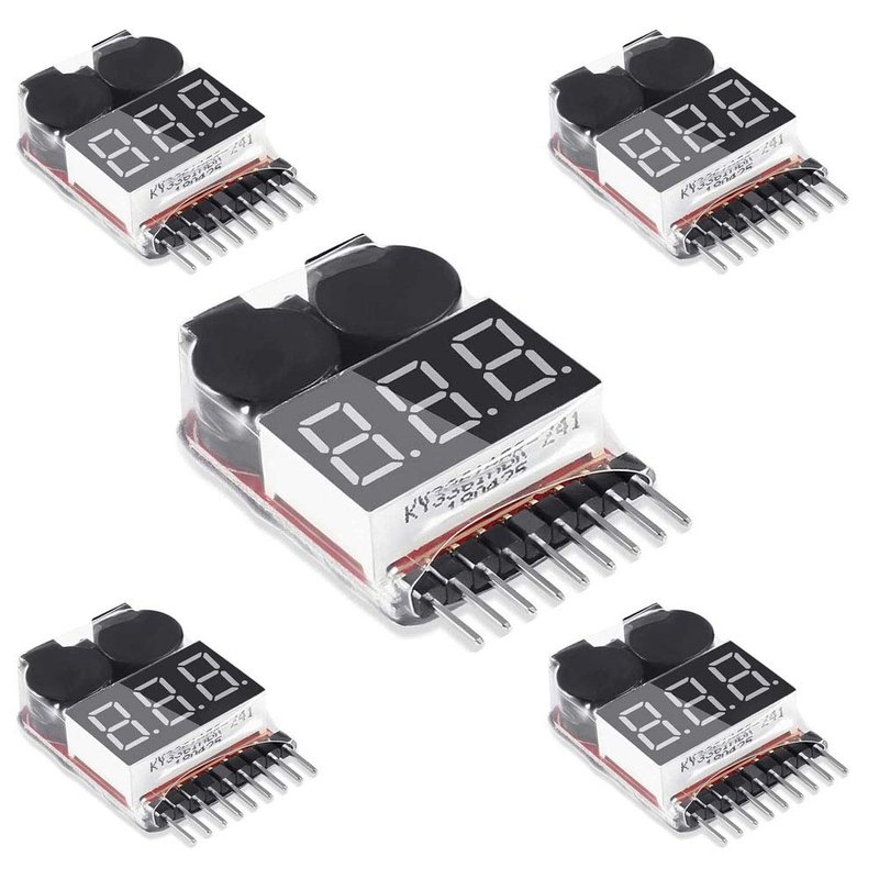 - 5PCS 1-8s Lipo Battery Voltage Tester, Low Voltage Alarm Mode for 2-8S, Function of Checking Your Lipo Cells Voltage