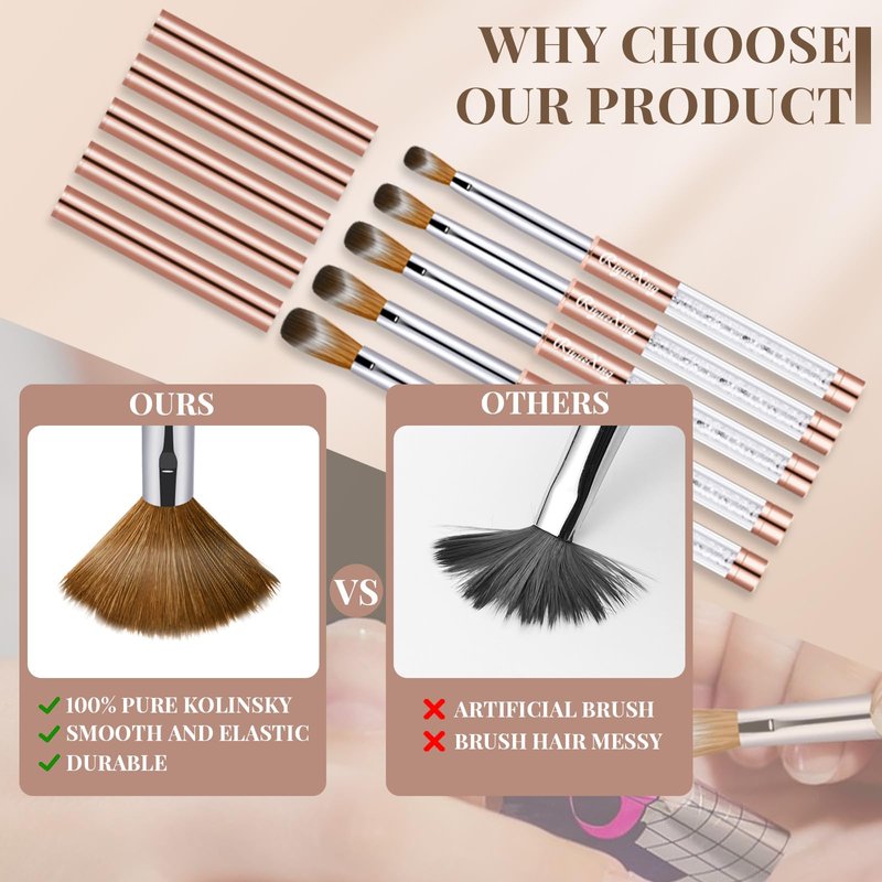 - These nail brushes are made with the finest sable hair and Kolinsky hair. It is flexible and durable. It is a necessary nail art tool to create acrylic nails, Apply acrylic products easily, smoothly, and consistently.