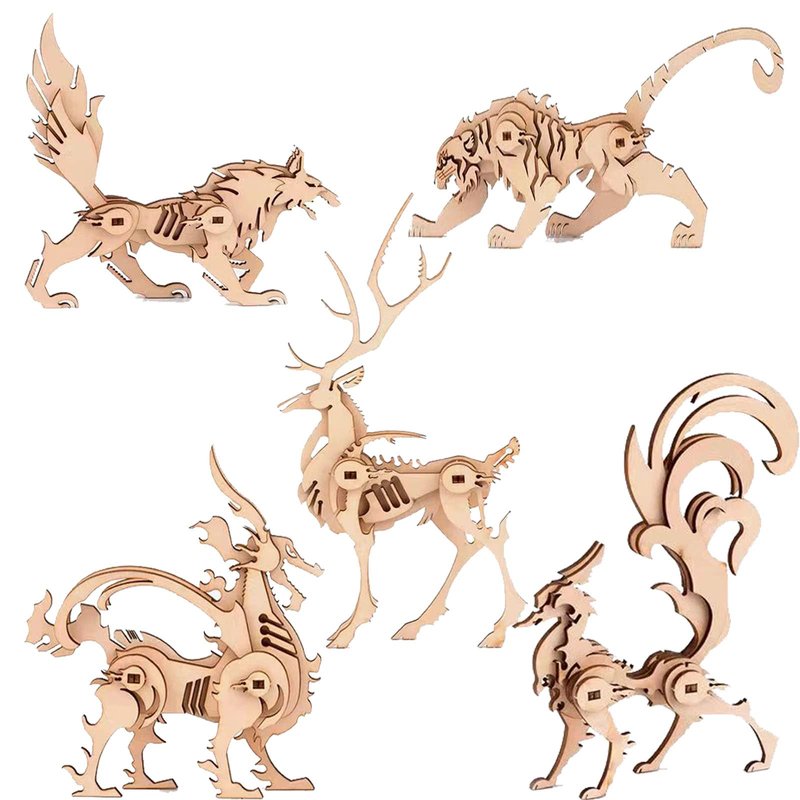 - Model (5 in 1): Exquisite laser 3D puzzle wooden DIY kit, it is a set of miniature 3D toys with animal appearance. It has been carefully designed and suitable for adults and children to spend leisure time. Model: TOY01 (animal), deer, tiger, wolf, unicorn, fox.