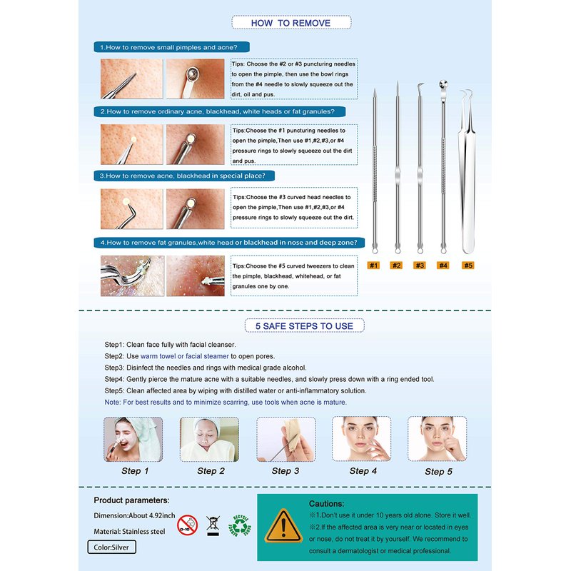 - 🏅With Detail Instruction: Comes with a diagram instruction that help you to solve all of blackhead, pimple, ance and blemish problems with ease. Please read the instructions inside the package to know how to use them in details.