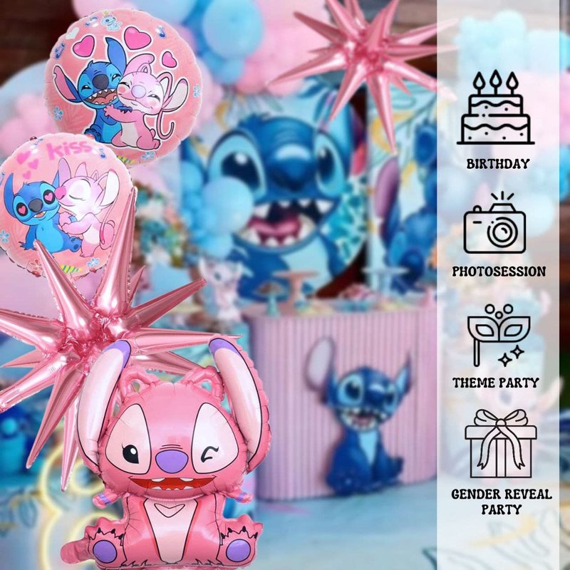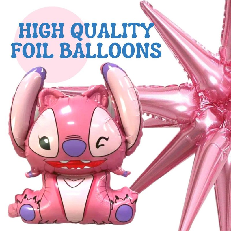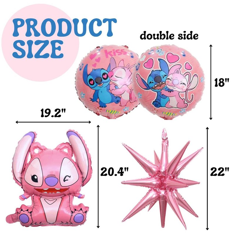 - All of the balloons for birthday have different sizes: giant pink animation character shape balloons has size 19.6 inch, round balloons have size 18 inch and pink star balloons also have size 22 inch. Our birthday balloons are perfect fit for creating a memorable atmosphere on your birthday party
