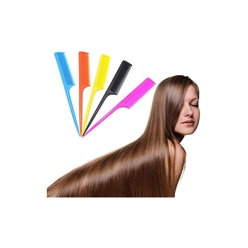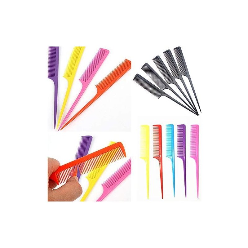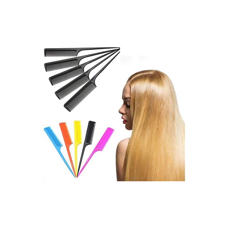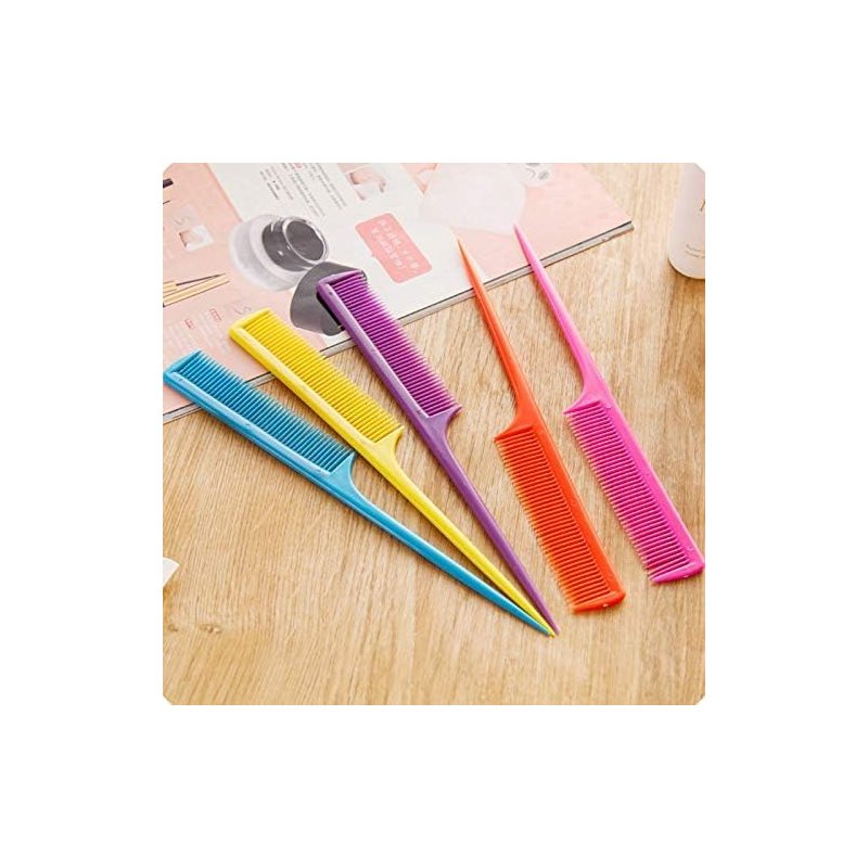 5pcs Colorful Rat Tail Comb Plastic Pointed Tail Comb Haircutting Comb Makeup Hairdressing Partition Comb Multicolor one-size