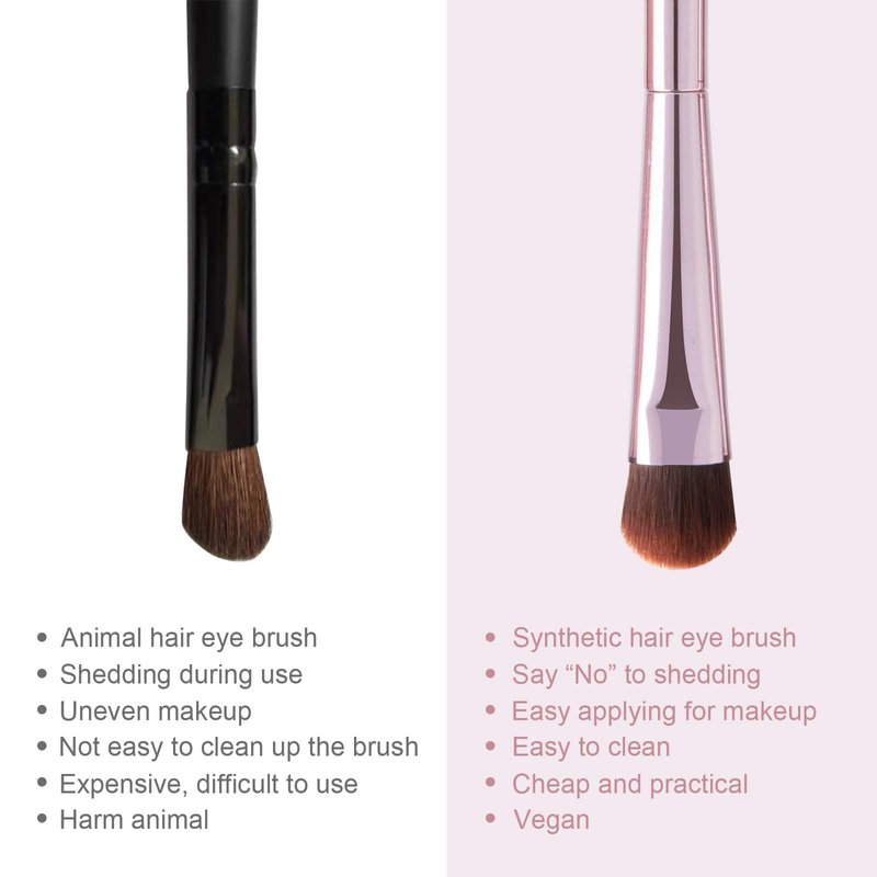 - ♥MATERIAL: The bristles are artificially synthesized, imitating the grasping power and softness of animal hair, but no odor will not change the properties, and it can perfectly blend lotion, eye brush, eye shadow, and eyebrow powder. Hard aluminum tubes and electroplated handles give our brushes texture and durability.