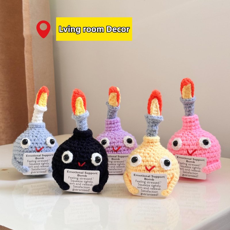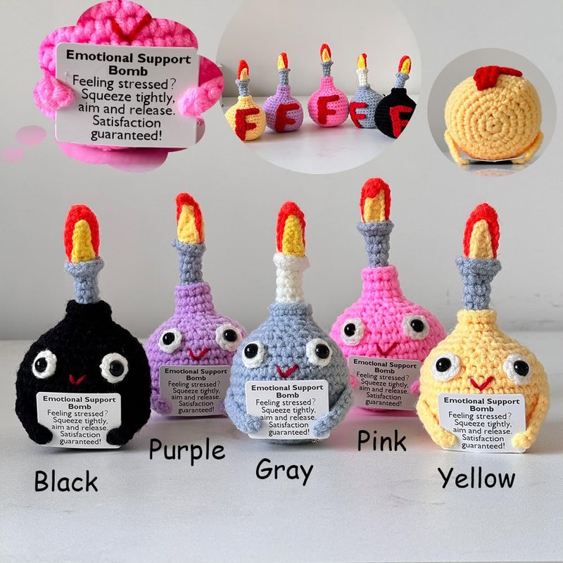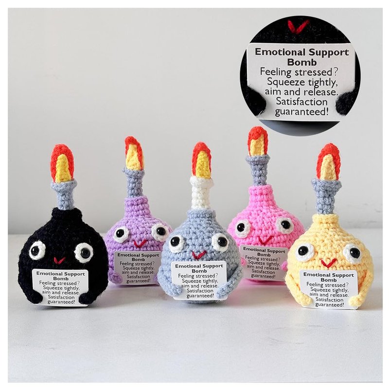 5PCS Handmade Crochet Bomb Desk Ornament,Crochet F-Bomb,Emotional Support Bomb,Stress Relief Gift,Mental Health Gift,Home/Office Desk Decor,Crochet Desk Toys, for Team/Colleagues/Friends