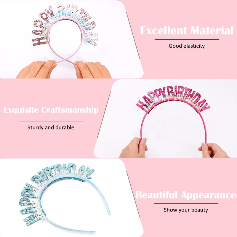 - [High-quality Materials]: Birthday headband has specially designed shiny letters "Happy Birthday", the letters are surrounded by high quality plastic laser sequins, durable and colorfast. This birthday girl crown are not easily damaged reusable.