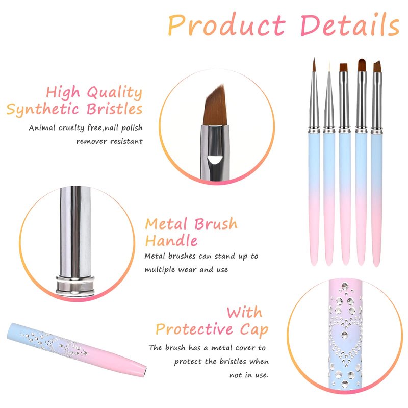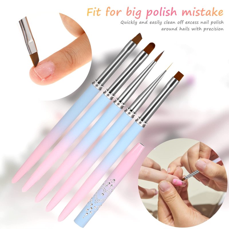 - NAIL CLEANING BRUSH - Our nail clean up brush set of 5 for specific purposes. The round head nail polish brush is suitable for removing large unwanted polish around your nails, while the angled tip is suitable for precisely cleaning even hard-to-reach areas.