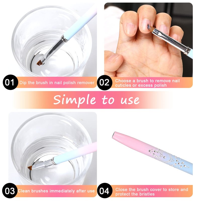 - SIMPLE TO USE & CLEAN - Simply place the clean up brush for gel nail polish in the nail polish remover, then place the nail art brush on the desired area to remove excess nail polish on the cuticle. Remember to always clean your nail polish brushes for nail art immediately after use.