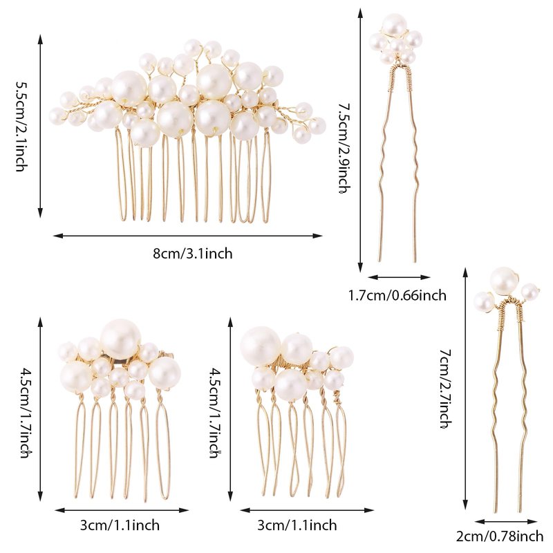 - What you will get: You will receive 5 pieces of these bridal hair combs and pins in 5 different styles. The size of style 1 is 2.1 × 3.1 inches/ 5.5× 8 cm, the size of style 2 and 3 is 1.7× 1.1 inches/ 4.5×3 cm, the size of style 4 (hair pin) is 2.9× 0.66 inches/ 7.5 × 1.7 cm, the size of style 5 (hair pin) is 2.7× 0.78 inches/ 7× 2 cm.
