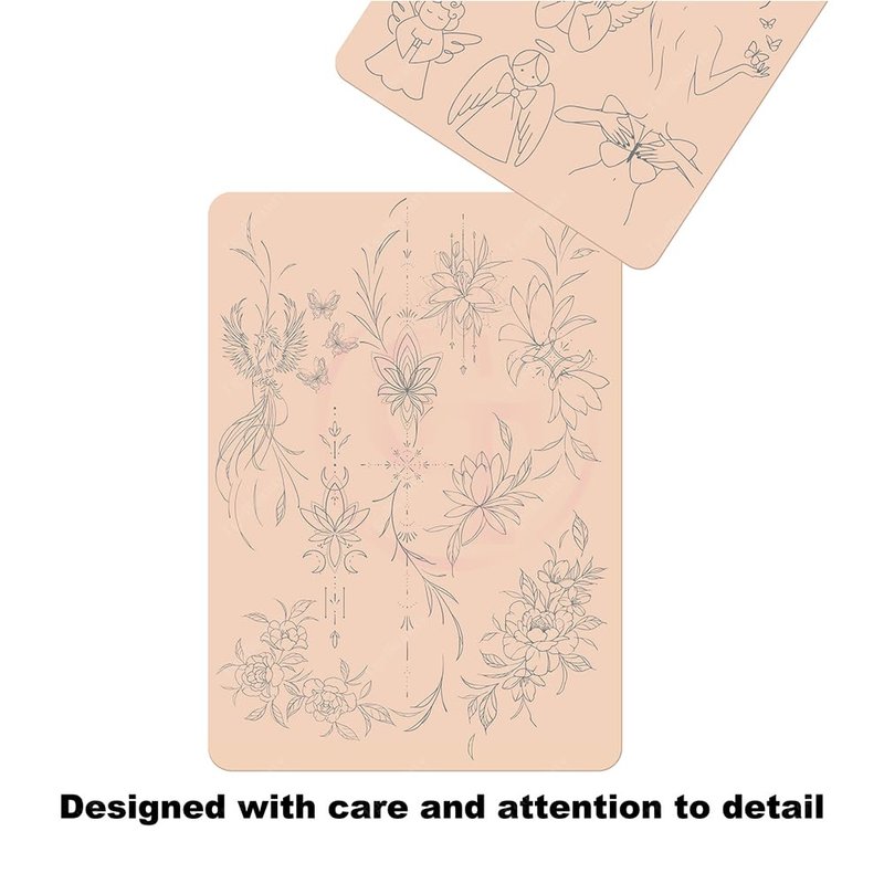 - Improving your tattooing skills with our pre-printed tattoo practice skin. Designed especially for tattoo artists and beginners to refine their craft. With its realistic texture, pre-printed designs, and durability, you can elevate your skills to the next level and confidently embark on your tattooing journey.
