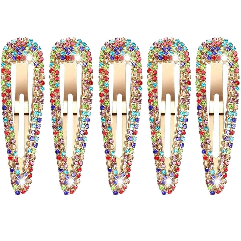 5Pcs Rhinestone Snap Hair Clips, Water Drop Crystal Snap Hair Barrettes, Glitter Shining Metal Snap Hair Clips, Glittering Hairpins Headwear Hair Accessories for Girls Women (Type F)