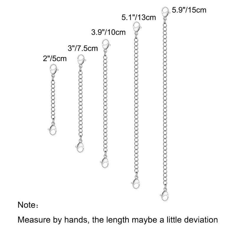 - Silver Necklace Extender: This set of women bracelet extender has 5 kinds of lengths( 2”/5cm , 3”/7.5cm, 4”/10cm, /5”/13cm, 6”/15cm) which can meet your different needs.