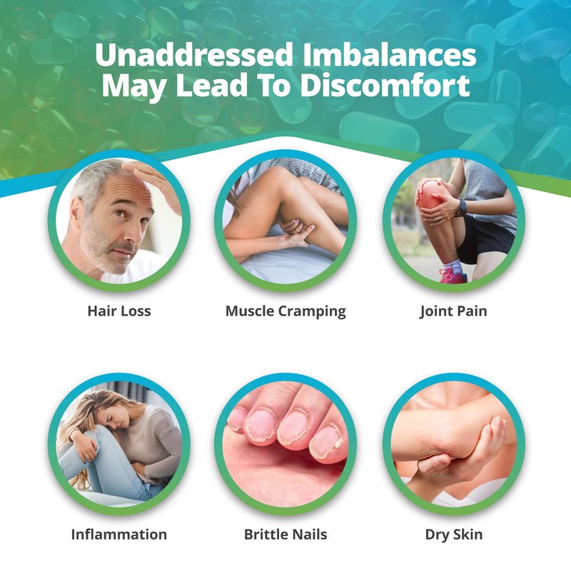 - NUTRITIONAL DEFICIENCIES CAN LEAD TO PHYSICAL HEALTH ISSUES. When your body is not properly absorbing specific nutrients from your diet and/or supplements, a number of physical health issues may develop. Common symptoms of nutrient imbalances include brittle nails, hair loss, inflammation, muscle cramps, and dry skin.