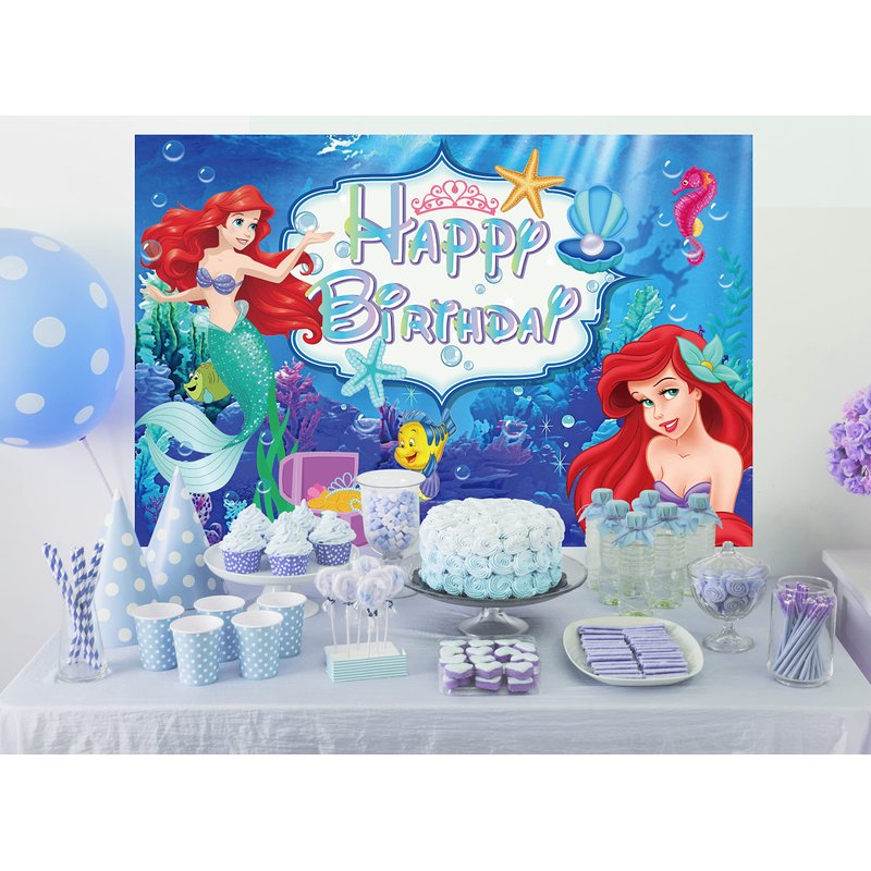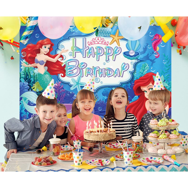 - Little Mermaid Party Decorations for Gril and Boy: The backdrop includes 1 pc Happy Birthday backdrop. It's very easy to use, u can hang anywhere. then u will have a great fun Under the Sea theme party. this party decorations can be used for photography, pictures, photo booth, home decorations, wallpaper, wall background scene, or decoration. Also suitable for weddings, birthday parties, baby showers, baptisms, bridal showers, festivals,etc