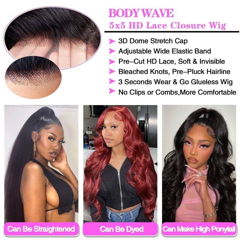 - Color: 5×5 Glueless Body Wave Lace Front Wigs