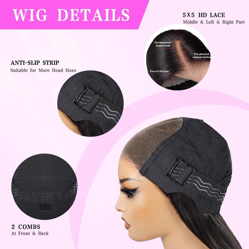 - 【5x5 HD Lace Closure Wigs Human Hair Lace Detail】:5x5 HD Lace Closure Wigs Human Hair, Swiss Pre-Cut Lace, Pre-Plucked Natural Hairline, Lightly Bleached Knots,Blends Perfectly Into Your Skin, Soft and Breathable, The Edge Is Stronger and Neater. Deeper Lace Part Space, Can Made Middle or Side Part