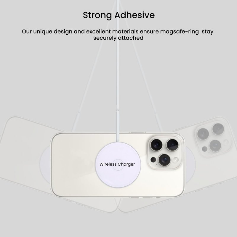 (2) Use our mag safe rings to quickly and accurately align your phone with your wireless charger for better charging