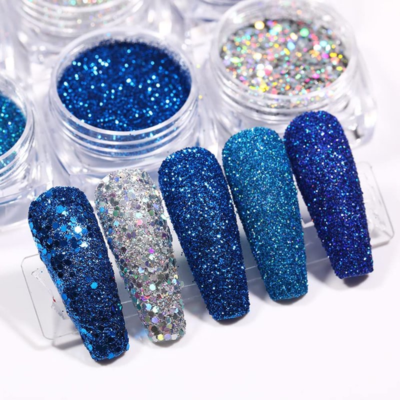 6 Boxes Holographic Nails Glitter Powder Nail Art Supplies Metallic Shining Flakes Blue Silver Nail Glitter Set for Nails Art Decoration