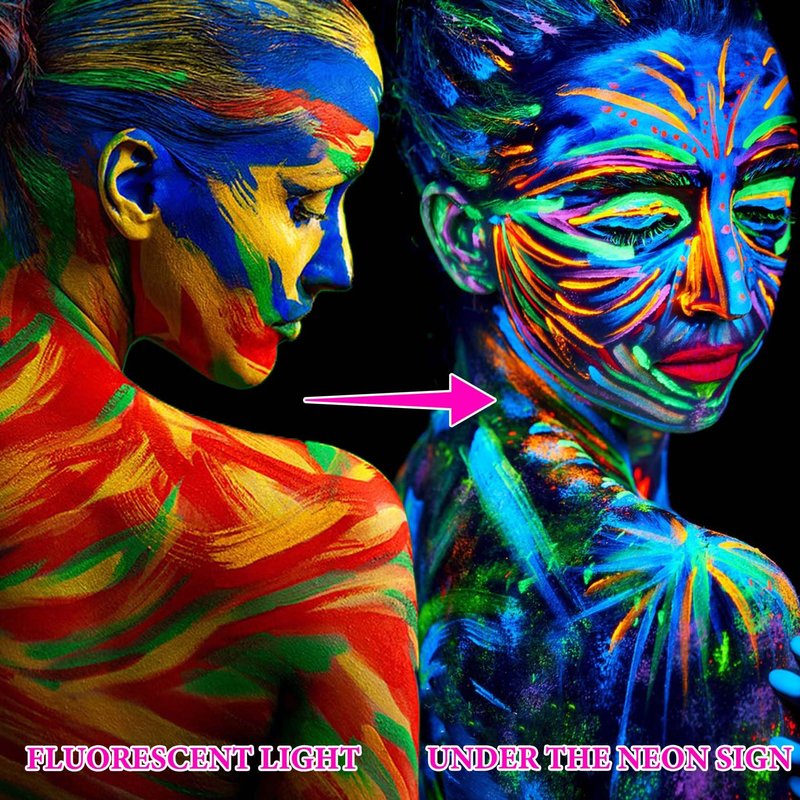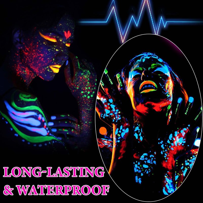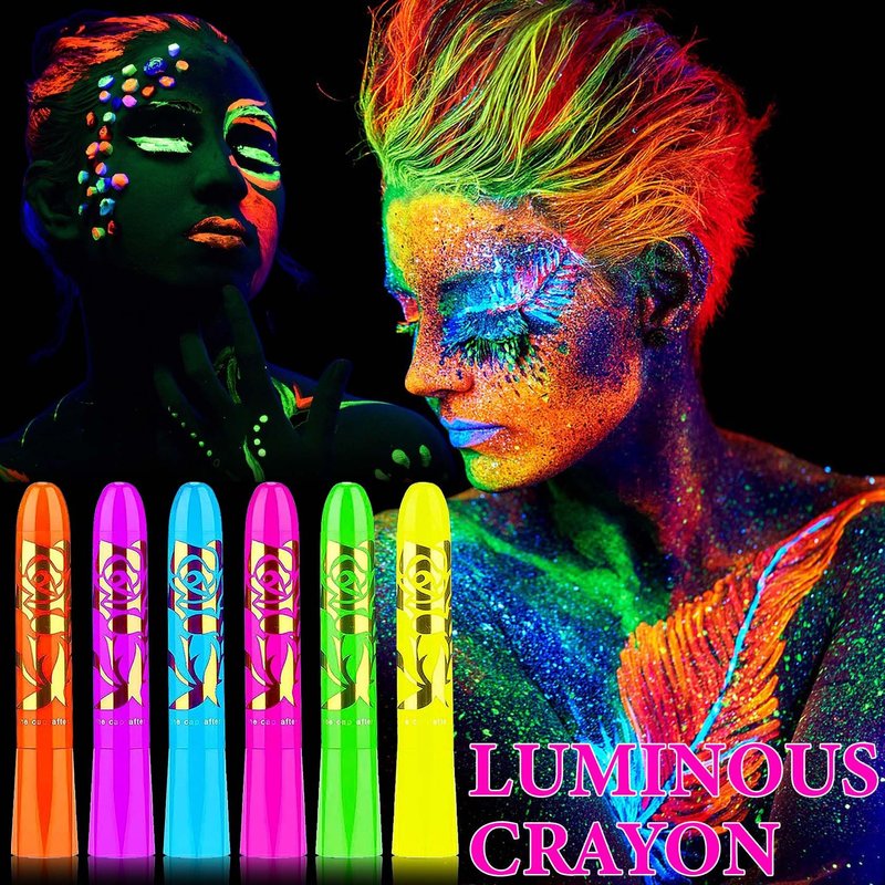 - 🛒【Widely Use】Face body painting set, neon fluorescent crayons are surprisingly bright, shimmering and glowing in the dark, versatile, perfect for Halloween, Mardi Gras, party makeup, parties, festivals, cosplay, clubs, masquerades and other occasions.