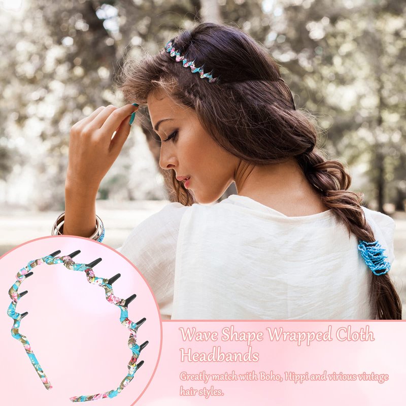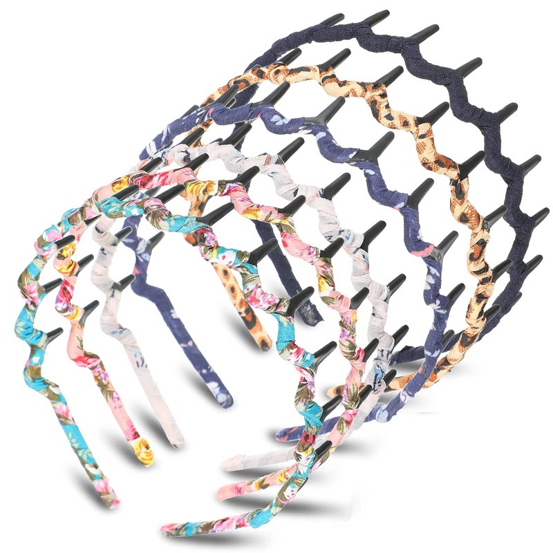 6 Colors Zigzag Shark Tooth Hair Comb Headbands Wrapped Cloth Hard Hairbands Wave Shape Plastic Hair Band Hair Accessory for Women Girls (Chic Pattern)