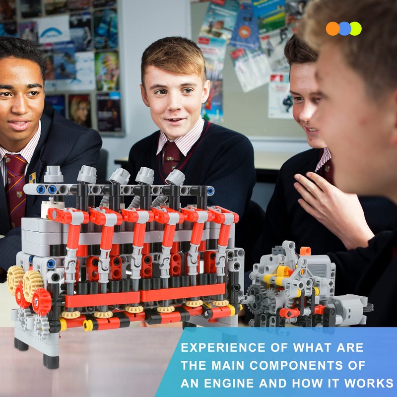 - Educational Objective: Develop hand-eye coordination and understanding of engine components through building a 6 cylinder engine model.
