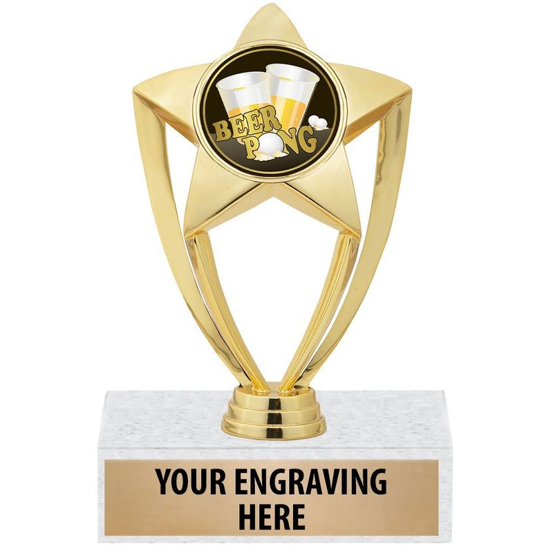 6" Gold Star Beer Pong Trophies - Beer Pong Champions Trophy Award