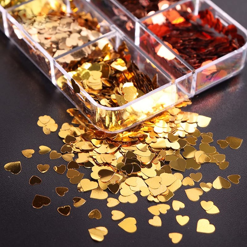 - 【Premium Material】- Heart nail glitter flakes are made of high-quality material, shows different flash effects from different angles. which safe to wear on the skin. Also can be used with hair gel or glitter primer to keep your sparkles stay longer, easy to remove with water.