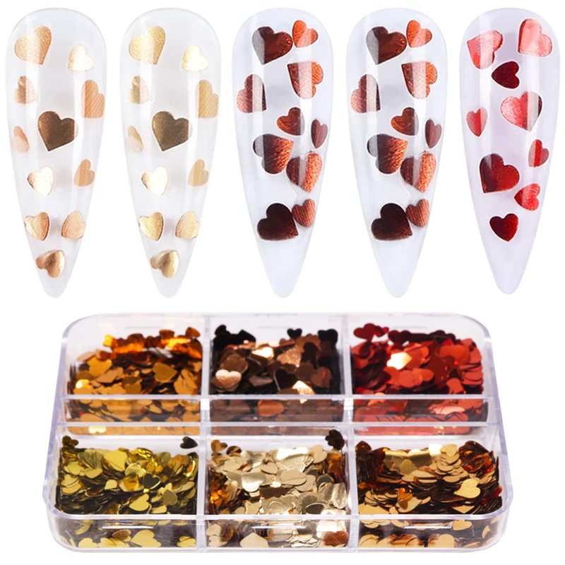- 【Nail Heart Glitter】- Heart nail sequins have 6 different colors, each of which is carefully selected and packaged in a storage box. You can choose different colors to decorate the nails, create a variety of dazzling heart nail decor.