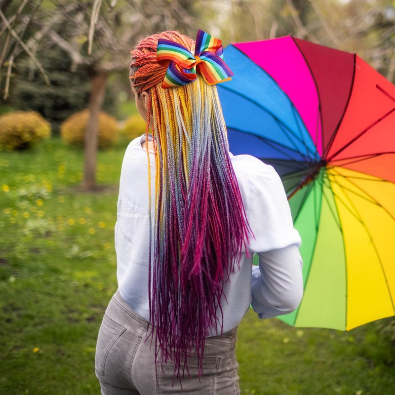 - Large Size Rainbow Hair Bows- So cute rainbow grosgrain ribbon hair bows, approx, 6 inches. Big size fit most women,teens,toddlers,girls,lady,lgbt,gay,lesbian, transgender,bisexual,unisex children and adults. Super lightweight and comfortable to wear, non slip! Perfect for her pigtails! Decorating braids, ponytails,bun, half up-do, braid, side ponytail.