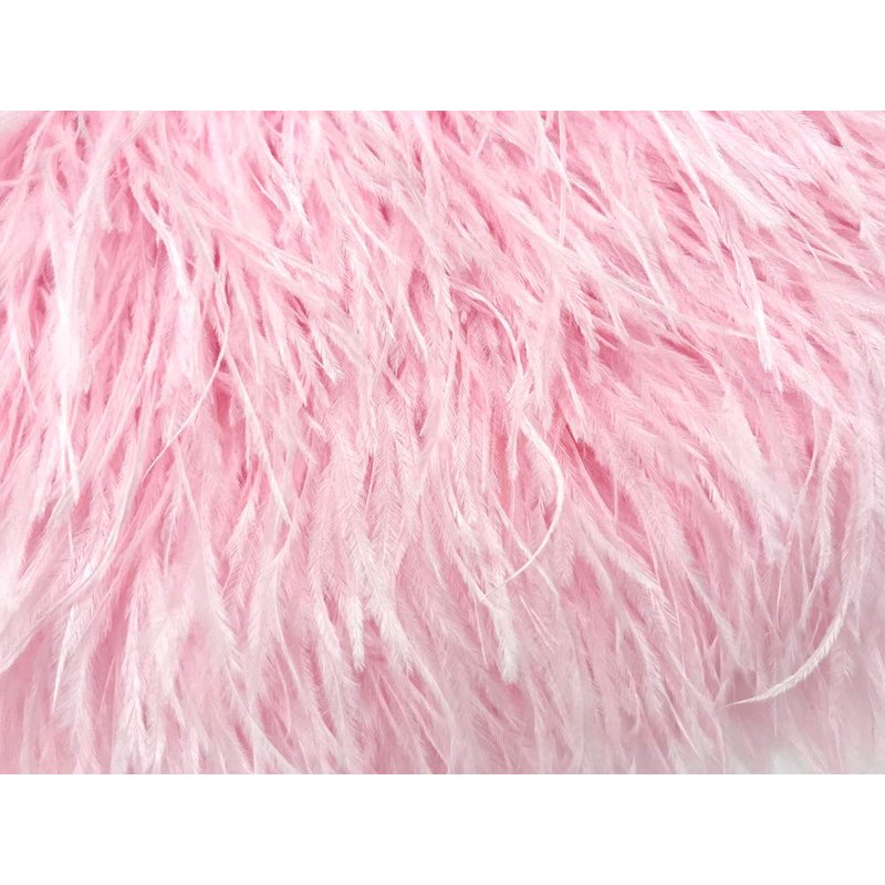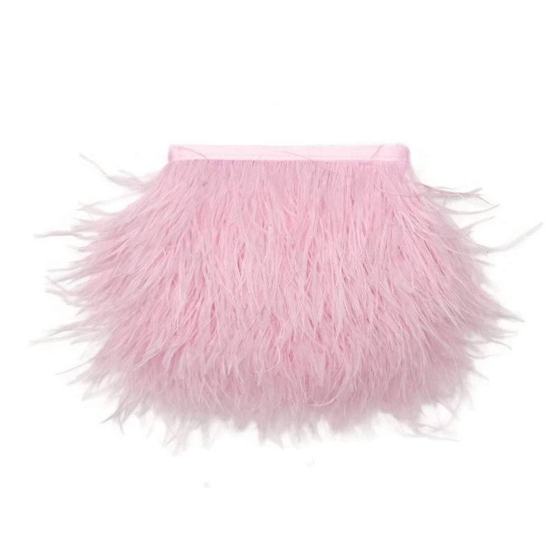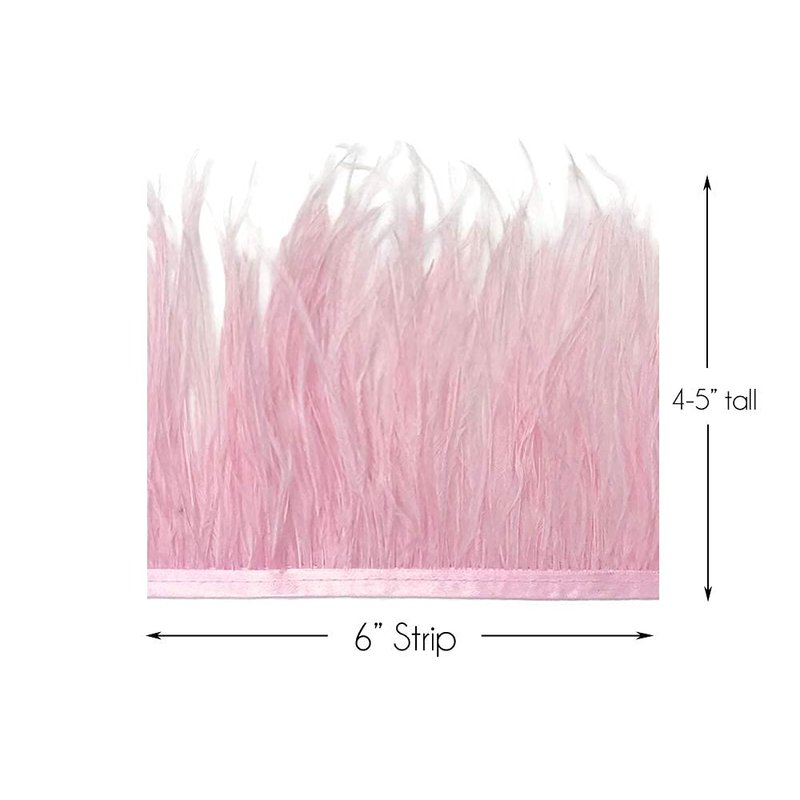 6 Inch Strip - Baby Pink Ostrich Fringe Trim Feather Craft Sample DIY Millinery Supply | Moonlight Feather