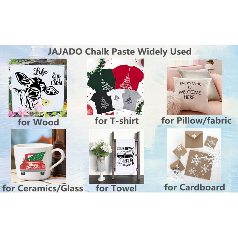 - 【Chalk Paint Application】JAJAD stencils paste for reusable silk screen stencil, JAJADO chalk paint for crafts on multi surface example fabric, wood sign, mug, canvas, pillow, glass, clothing, window, ceramic, clay, mirrors, chalkboard, plastic, tote-bags, card decorating, painted walls or more DIY home decor art craft print project.Decorate your farmhouse with your kids and family full of fun!