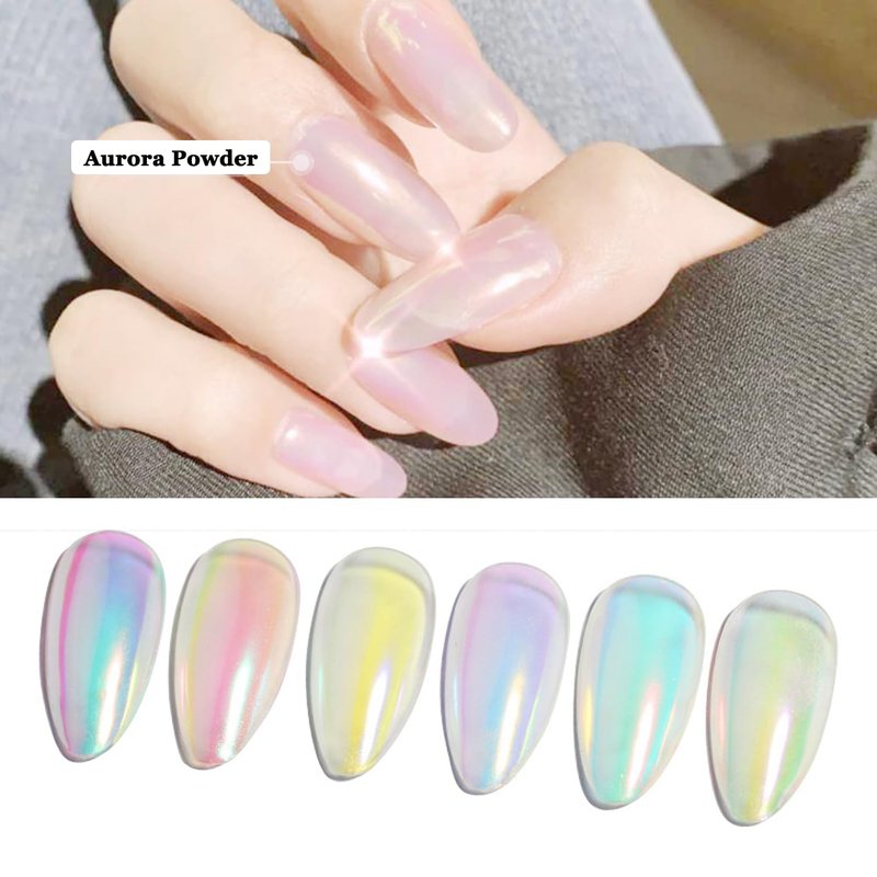 - Package Includes: You will get 6 jars of aurora nail art powder with 4pcs eyeshadow sticks, it needs to be used with gel nail polish and no wipe top coat.