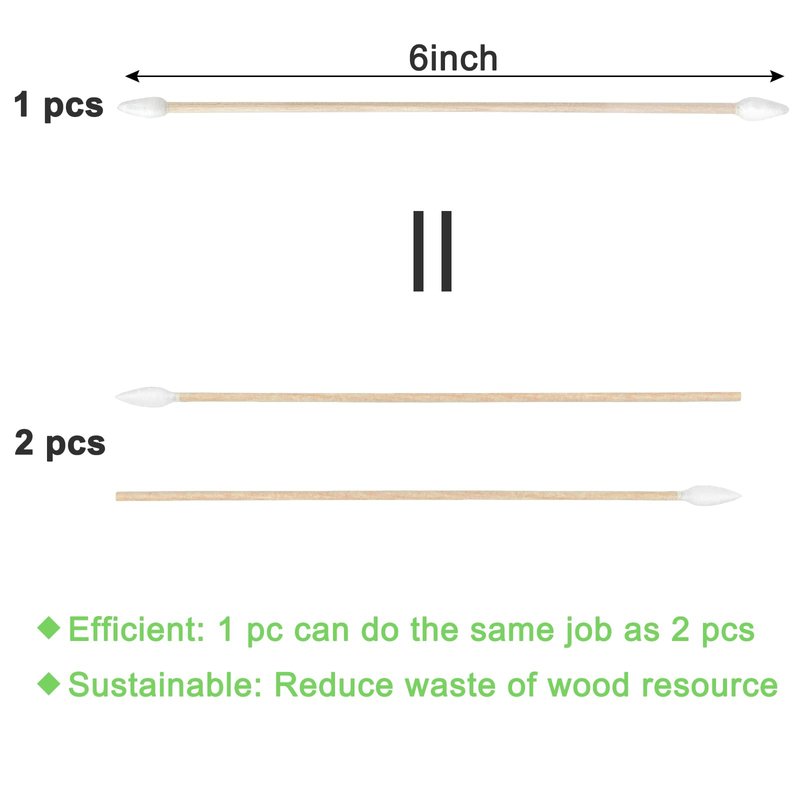 - Double End Design: 200 pcs double tip long cotton swabs = 400 pcs regular single end long cotton swabs, fewer long cotton swabs can get the same job done, reduce wooden sticks waste, more sustainable