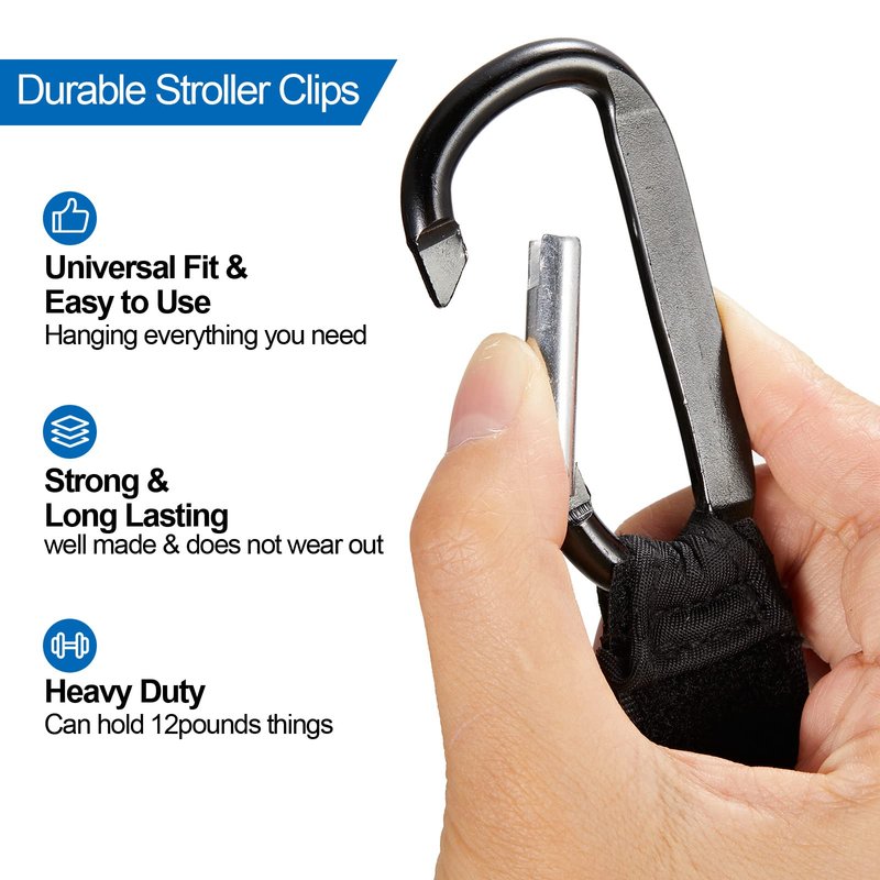 - Bring Convenience to Life: the stroller clips for bags are helpful to you when you take your baby out with a stroller, with these mommy hooks, you can hang baby essentials and daily necessities on the stroller, such as diaper bags, handbags, shopping bags, grocery bags, keychains, puese, etc., so you can release your hands and back, and you can make a phone call, drink water or other things while pushing the stroller