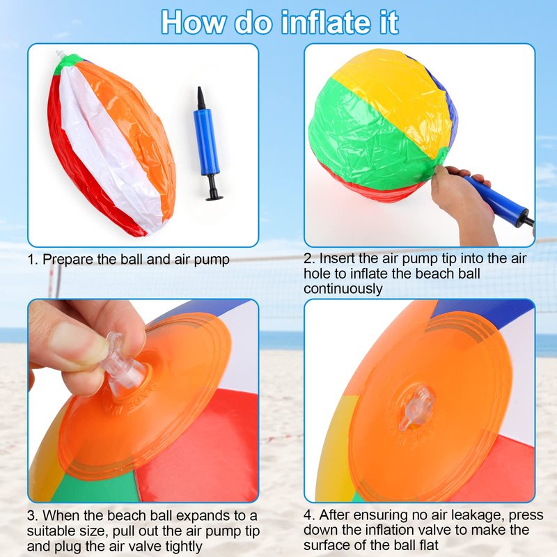 6 pieces large beach balls, beach toys for kids and adults, pool toys for girls and boys, inflatable balls, pool floats, and party decorations, you must-have beach stuff, and accessories. Beach balls are suitable for all kinds of water activities, from pool parties to beach vacations. Beach balls provide endless summer fun for your vacation time. Our beach balls are ideal for all ages to keep them inflatable and enjoyable all season long.