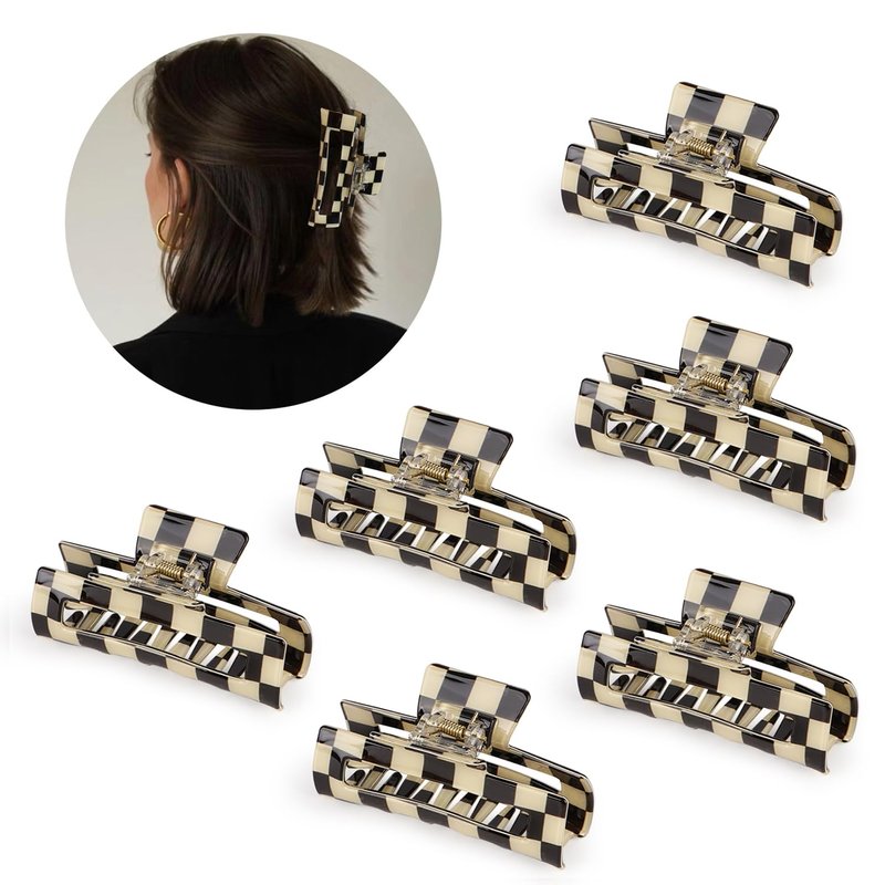 - 🎀What You Get -- Totally 6 pcs unique checkered hair claw clips are included. Enlarged size of 3.2 × 2.8 × 1.6 in.