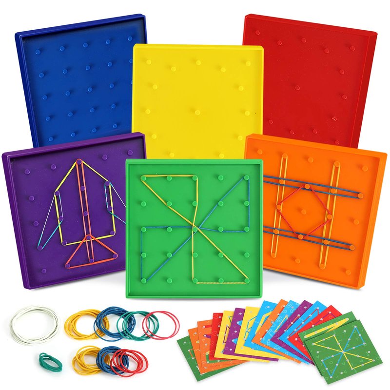 - LOOKING FOR GREAT GIFTS AND PRIZES? - Your kids will love this! It is an ideal birthday present, Christmas stocking stuffer, party favor, and Easter basket filler. Parents, grandparents, and nanas, as well as teachers would want to give this to their little ones. Comes with a storage bag where you can easily store and keep the geoboards. A great toy to bring when going on a car or plane trip or when going to a doctor's appointment or even at restaurants