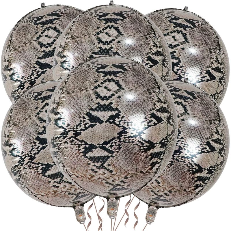 - Large Size Foil Animal Print Balloons: 6 Pcs 22 inch 4D Round Foil Balloons (uninflated) + 1pcs Straw +1pcs 32 foot Ribbon Roll,Multiple animal prints are available: tigher print,zebra print,python print,leopard print,giraffe print to choose from,there must be one can match your Jungle safari party theme.