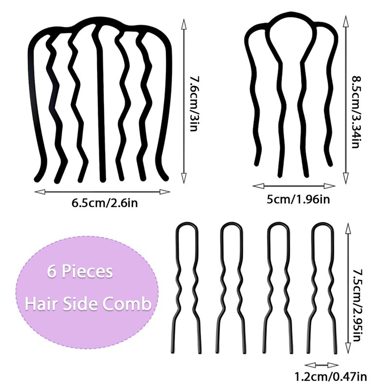 6 Pack Hair Comb,Hair Side Combs for Women Vintage Hairstyle Hair Accessories(Black)