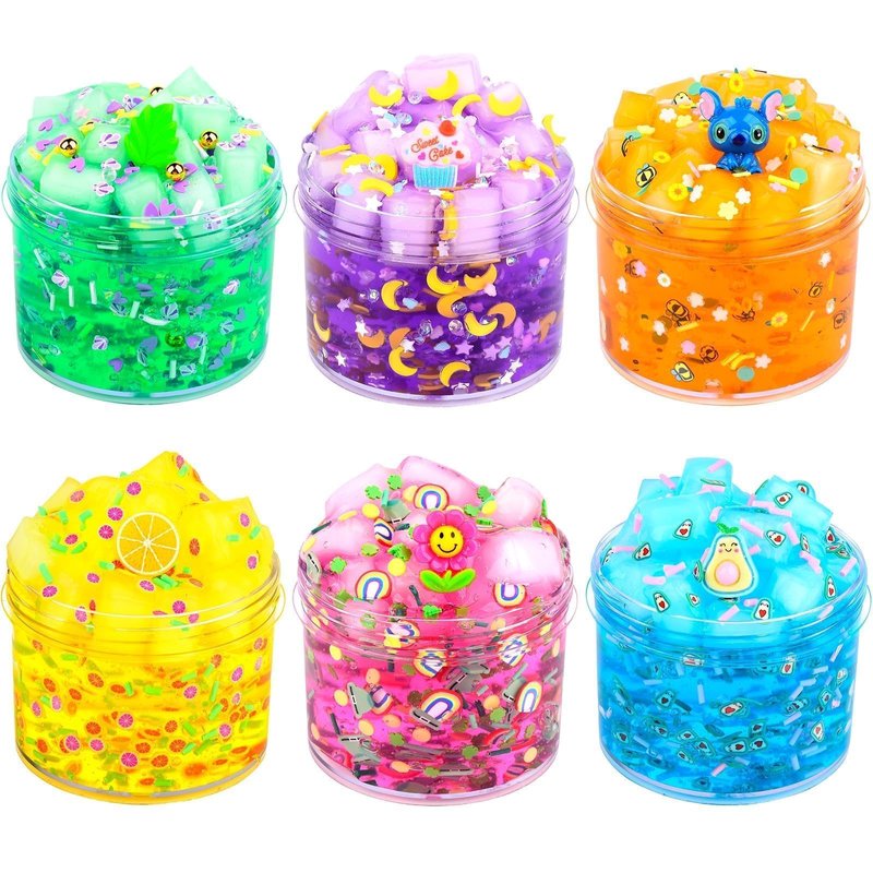 - 🌸 6 Pack Jelly cube crunchy slime Kit, very soft crystal clear slimes in the package, good putty slime toys for girls boys kids.