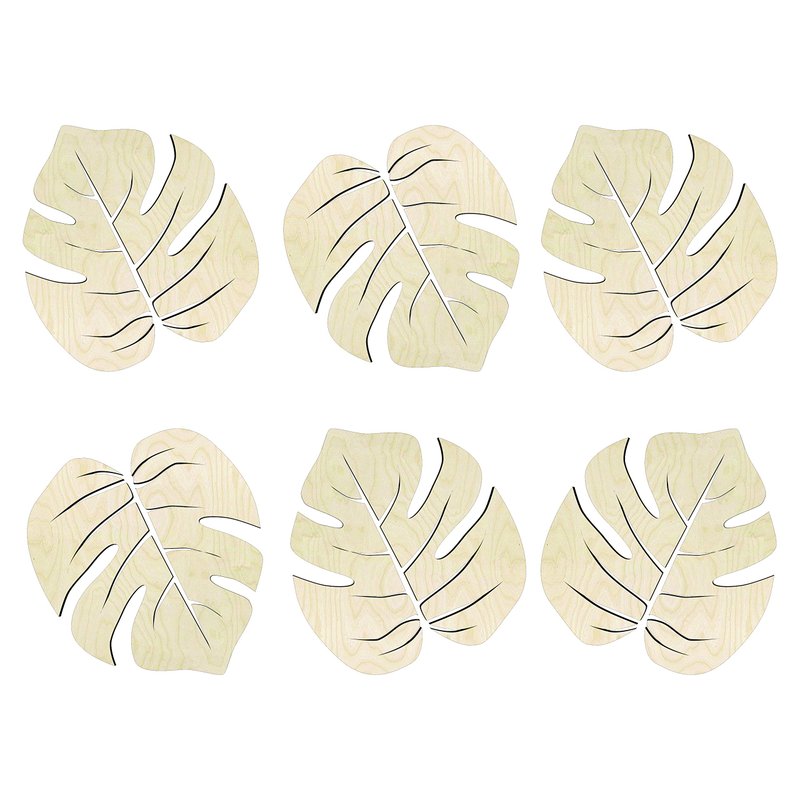 6 Pack of 3 inch Monstera Leaf shaped cutouts, Swiss cheese plant Wood cutouts, Unfinished tropical boho leaf wood cutout, DIY Craft wooden cutout