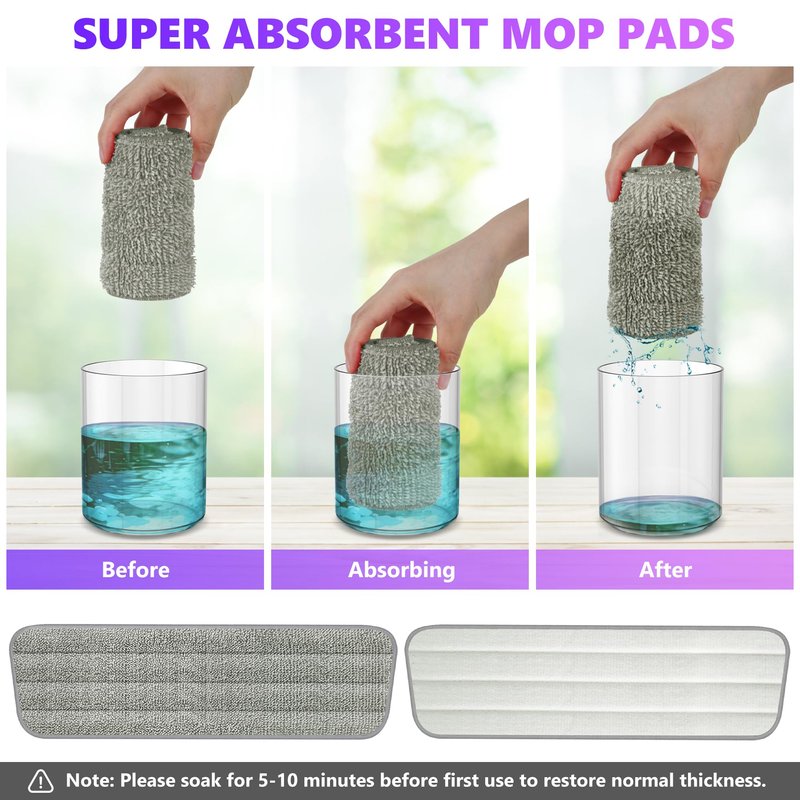 - Compatiblely: Compatible with Swiffer PowerMop and other spray mop, the size for each mop pads is 15.3 * 5.1 Inch. Reusable mop pads refills allows you to no longer rely on disposable mop pads, save your money and reduce the waste for the earth. (Tips: To protect the product during shipping, we have vacuum packed the product. Please soak the mop pads for 5-10 minutes before first use, then they can restore the thickness and stickiness.)