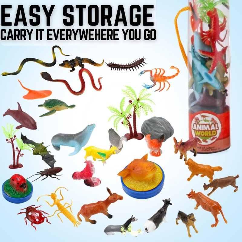 - LEARNING MADE FUN: This realistic mini playset not only sparks playful adventures but also doubles as an educational tool, introducing kiddos to the wild world of animals, swamp reptiles, bugs, dino and sea creatures!