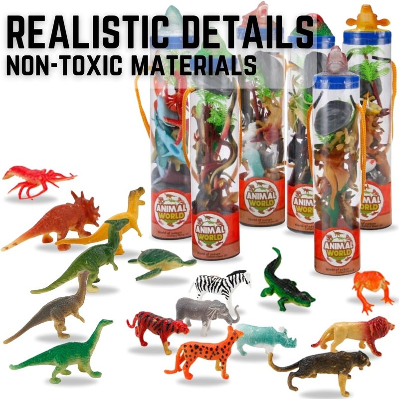 - SAFE TOY ASSORTMENT: Our small figurines are made from BPA-free plastic, ensuring a safe, wild ride for your toddlers. All packed neatly into 6 reusable toobs for easy storage and on-the-go fun.