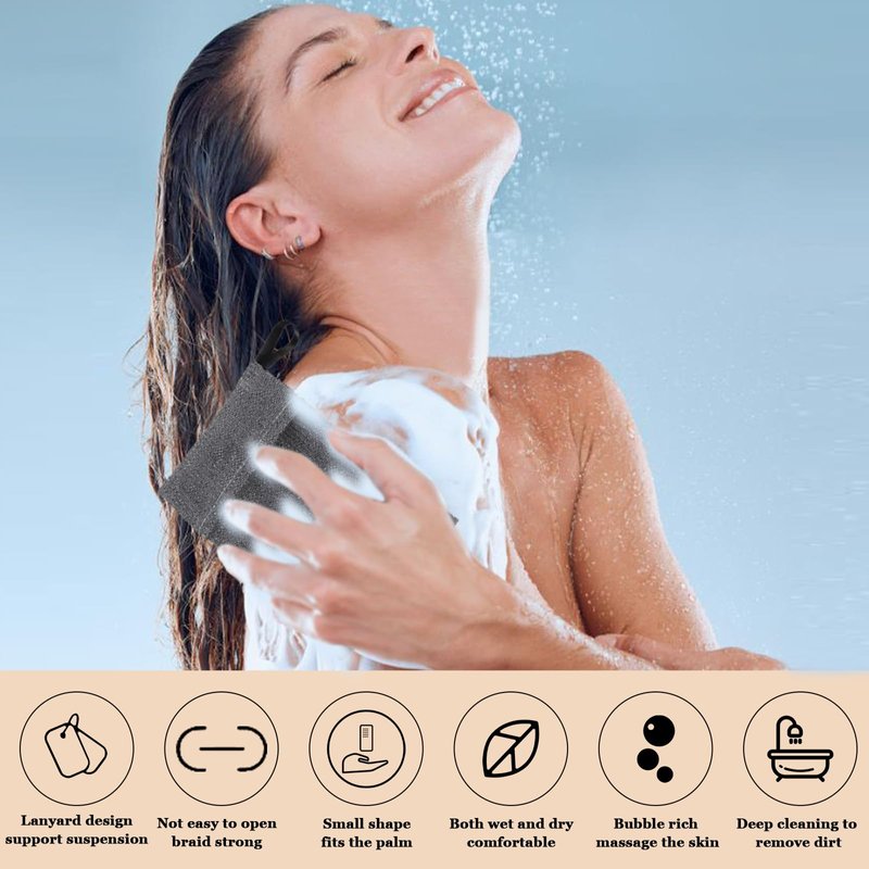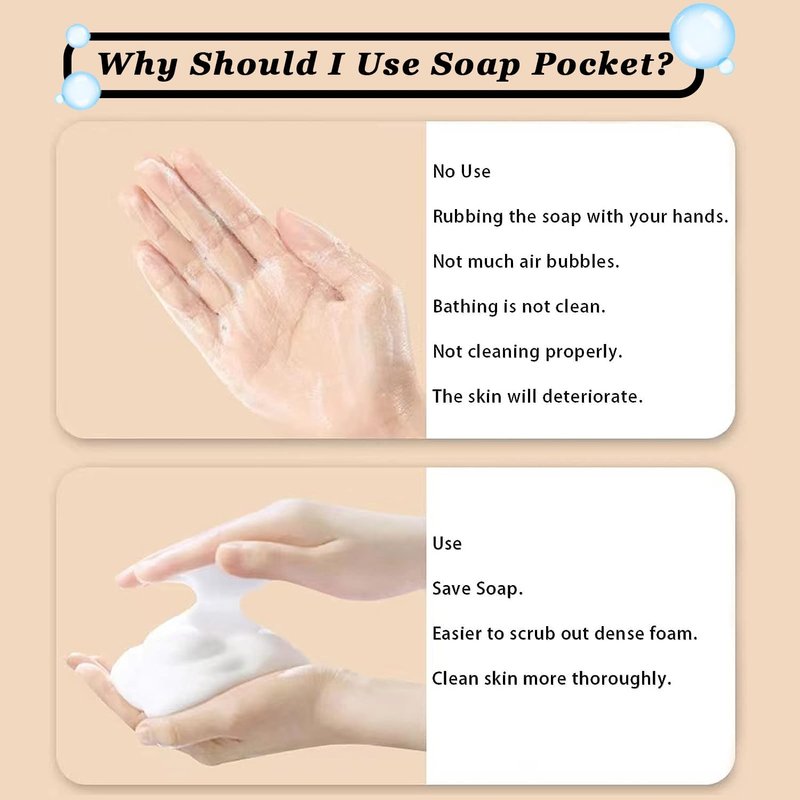 - 🌙Quick-foaming and Quick Exfoliation:The soap pocket is a fine mesh that can double layer to make rich and dense bubbles. Exfoliating soap pocket easy to foam and short foaming time. Thus save your soap and better clean your body, leaving your skin feeling softer and cleaner. Also make you love bathing.Drive away fatigue and let you feel great.Exfoliation helps remove dead skin cells and acne, deep cleanses without damaging the skin's skin-friendly fabric, and rejuvenates the skin. ▶note:not suitable for sensitive skin◀