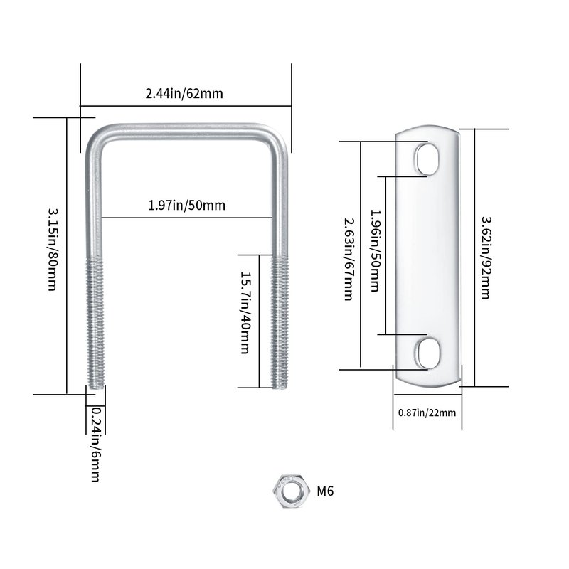 - High load capacity: M6 U-bolts include U-bolts, plates and nuts, complete with accessories. The square u bolts can be fully tightened, which are strong and have a higher load-bearing capacity, can be used to hold pipes, sheets and wood panels and are practical.