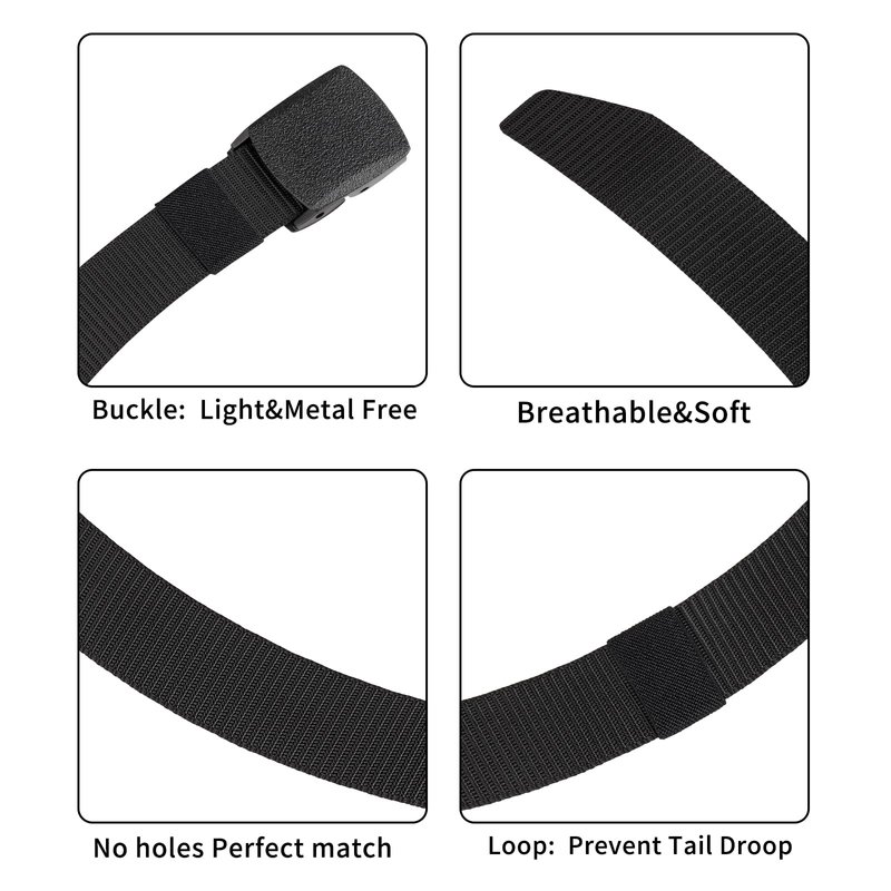 - ⭐️[Quality Tactical Belt Metal Free] : The tactical belt is made up of nylon belt and plastic buckle which is metal free. Compared with leather belt, nylon belt won’t crack or distortion. Compared with metal buckle, plastic buckle is light and rust-proof.